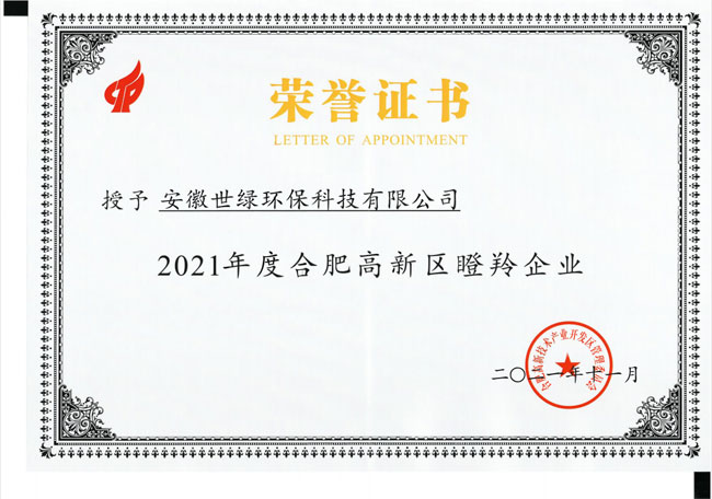 為深入實施創新驅動發展戰略,加快培育一批創新能力強勁、發展潛力巨大、競爭優勢突出的高成長企業,自2018年以來,合肥高新區已連續四年開展高成長企業梯度培育工作,安徽世綠環??萍加邢薰驹?019年、2020年連續兩年被認定為高成長雛鷹企業后,在2021年11月被認定為合肥高新區高成長瞪羚企業。